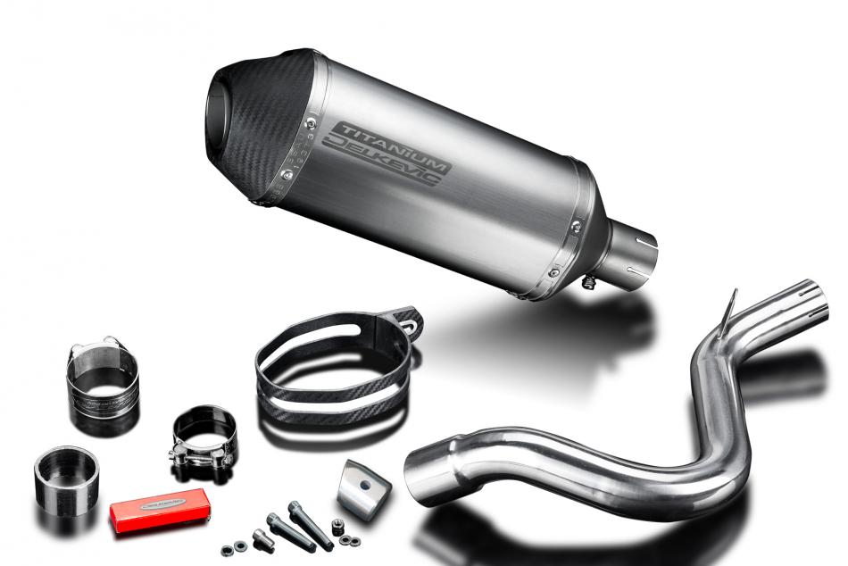 Replacement Silencer Kit for KTM 125 Duke (2011-2015) with Delkevic XOVAL 260mm Titanium Silencer with Carbon Finish end cap. Delkevic silencers are handcrafted from the highest quality materials to enhance your motorcycle in both performance and looks. We guarantee to improve your riding experience at an unbeatable price. The vast majority of our silencer kits come with all gaskets needed.