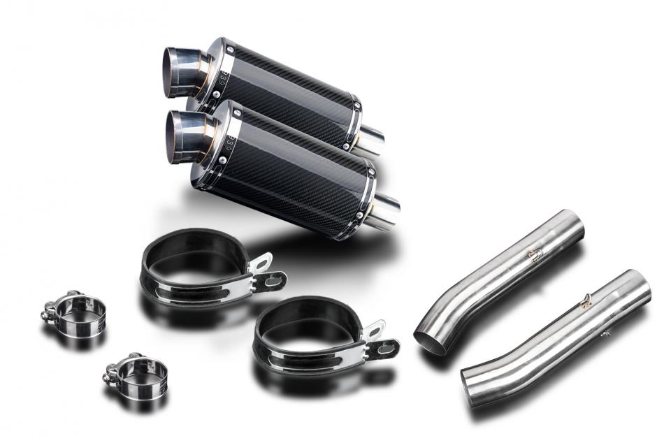 Replacement Silencer Kit for Aprilia RSV 1000 R FACTORY (2003-2010) with Delkevic DS70 225mm Oval Carbon Fibre Silencer. Delkevic silencers are handcrafted from the highest quality materials to enhance your motorcycle in both performance and looks. We guarantee to improve your riding experience at an unbeatable price. The vast majority of our silencer kits come with all gaskets needed.