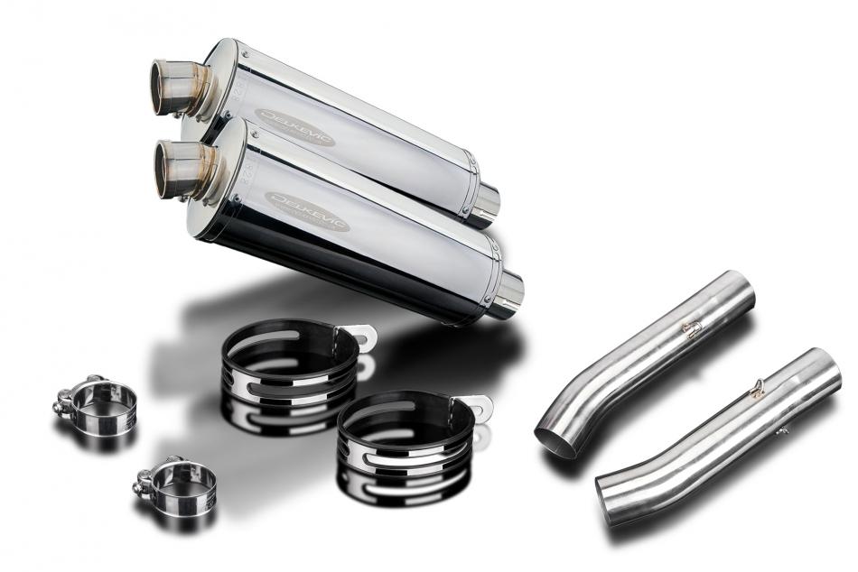 Replacement Silencer Kit for Aprilia RSV 1000 R FACTORY (2003-2010) with Delkevic 350mm Oval Stainless Steel Silencer. Delkevic silencers are handcrafted from the highest quality materials to enhance your motorcycle in both performance and looks. We guarantee to improve your riding experience at an unbeatable price. The vast majority of our silencer kits come with all gaskets needed.