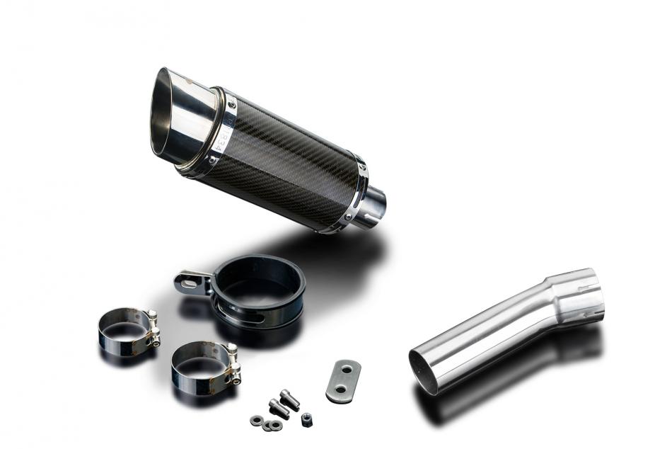 Replacement Silencer Kit for BMW F800GS with Delkevic Mini 200mm Round Carbon Fibre Silencer. Delkevic silencers are handcrafted from the highest quality materials to enhance your motorcycle in both performance and looks. We guarantee to improve your riding experience at an unbeatable price. The vast majority of our silencer kits come with all gaskets needed.