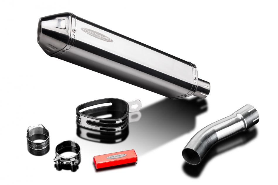 Replacement Silencer Kit for BMW F800R with Delkevic 420mm Tri-Oval Stainless Steel Silencer. Delkevic silencers are handcrafted from the highest quality materials to enhance your motorcycle in both performance and looks. We guarantee to improve your riding experience at an unbeatable price. The vast majority of our silencer kits come with all gaskets needed.
