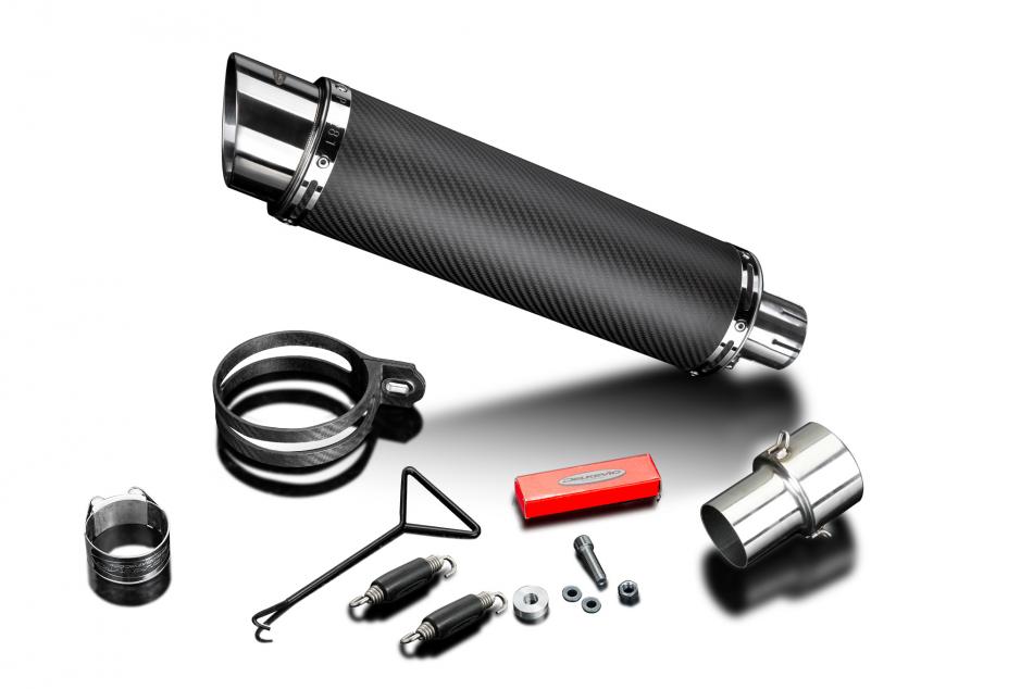 Replacement Silencer Kit for BMW HP4 with Delkevic DL10 350mm Round Carbon Fibre Silencer. Delkevic silencers are handcrafted from the highest quality materials to enhance your motorcycle in both performance and looks. We guarantee to improve your riding experience at an unbeatable price. The vast majority of our silencer kits come with all gaskets needed.