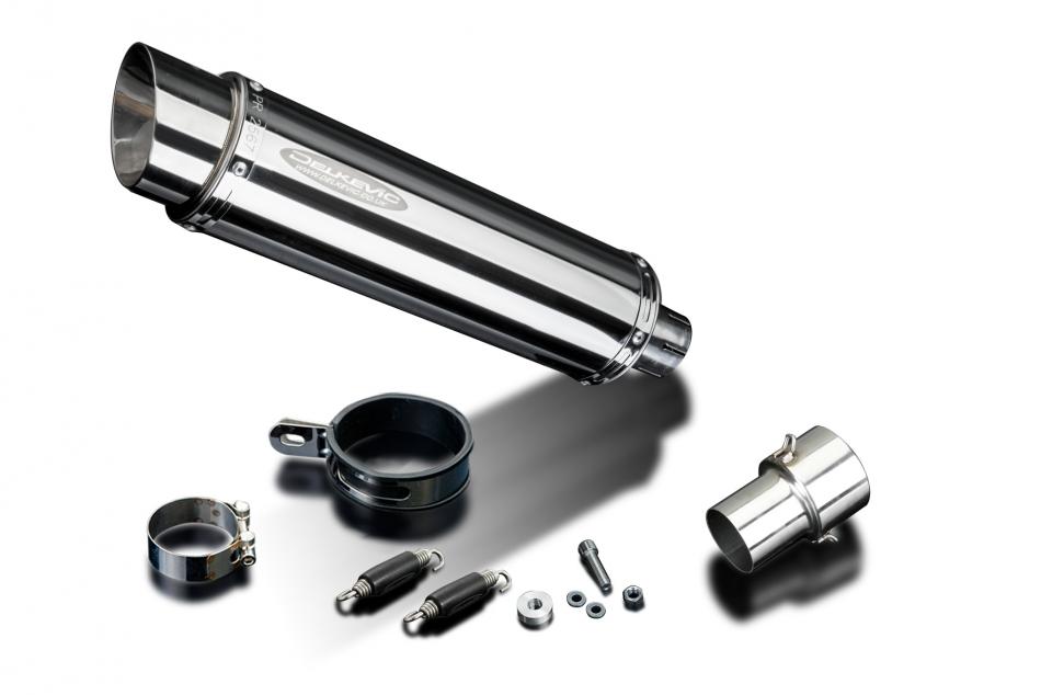 Replacement Silencer Kit for BMW HP4 with Delkevic SL10 350mm Round Stainless Steel Silencer. Delkevic silencers are handcrafted from the highest quality materials to enhance your motorcycle in both performance and looks. We guarantee to improve your riding experience at an unbeatable price. The vast majority of our silencer kits come with all gaskets needed.