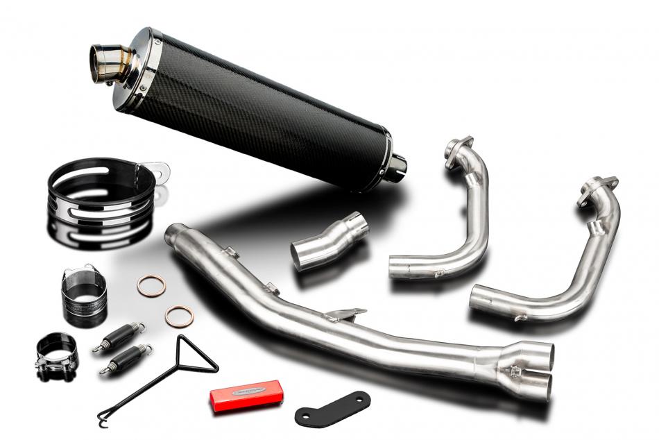 Complete exhaust system for CFMOTO 450MT (2025-2026) with Delkevic 450mm Oval Carbon Fibre Silencer. All Delkevic complete systems come with gaskets (where needed) clamps. We manufacture all our exhaust components in our own factory employing the most stringent quality control procedures.