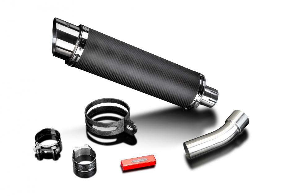 Replacement Silencer Kit for Ducati Diavel with Delkevic DL10 350mm Round Carbon Fibre Silencer. Delkevic silencers are handcrafted from the highest quality materials to enhance your motorcycle in both performance and looks. We guarantee to improve your riding experience at an unbeatable price. The vast majority of our silencer kits come with all gaskets needed.