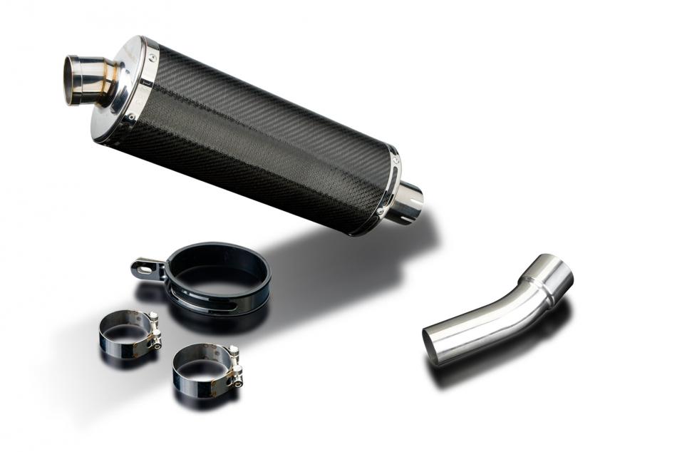 Replacement Silencer Kit for Ducati Diavel with Delkevic 350mm Oval Carbon Fibre Silencer. Delkevic silencers are handcrafted from the highest quality materials to enhance your motorcycle in both performance and looks. We guarantee to improve your riding experience at an unbeatable price. The vast majority of our silencer kits come with all gaskets needed.