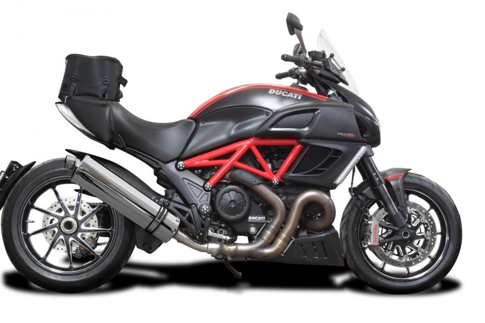 The Ducati Diavel is a high-performance power cruiser merging sportbike performance with cruiser styling. exceptional handling for its class, and a distinctive aesthetic. Style it further with a Delkevic exhaust.