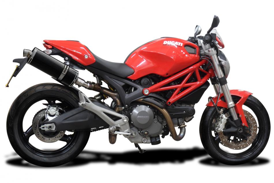 Replacement Silencer Kit for Ducati Monster 696 with Delkevic 350mm Oval Carbon Fibre Silencer. Delkevic silencers are handcrafted from the highest quality materials to enhance your motorcycle in both performance and looks. We guarantee to improve your riding experience at an unbeatable price. The vast majority of our silencer kits come with all gaskets needed.