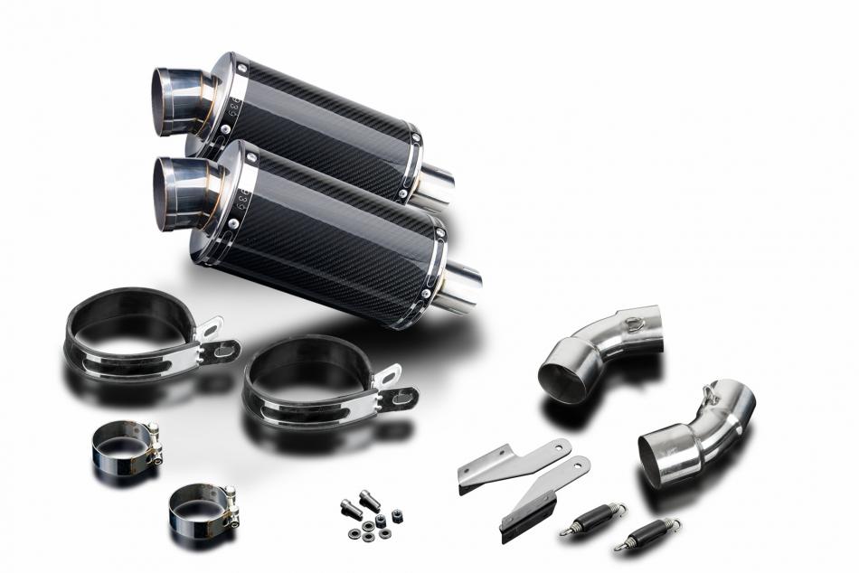 Replacement Silencer Kit for Ducati Monster 796 with Delkevic DS70 225mm Oval Carbon Fibre Silencer. Delkevic silencers are handcrafted from the highest quality materials to enhance your motorcycle in both performance and looks. We guarantee to improve your riding experience at an unbeatable price. The vast majority of our silencer kits come with all gaskets needed.