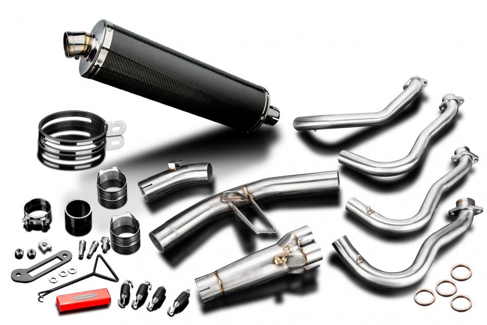Complete exhaust system for Suzuki GSX-S1000GT (2022-2026) with Delkevic 450mm Oval Carbon Fibre Silencer. All Delkevic complete systems come with gaskets (where needed) clamps. We manufacture all our exhaust components in our own factory employing the most stringent quality control procedures.