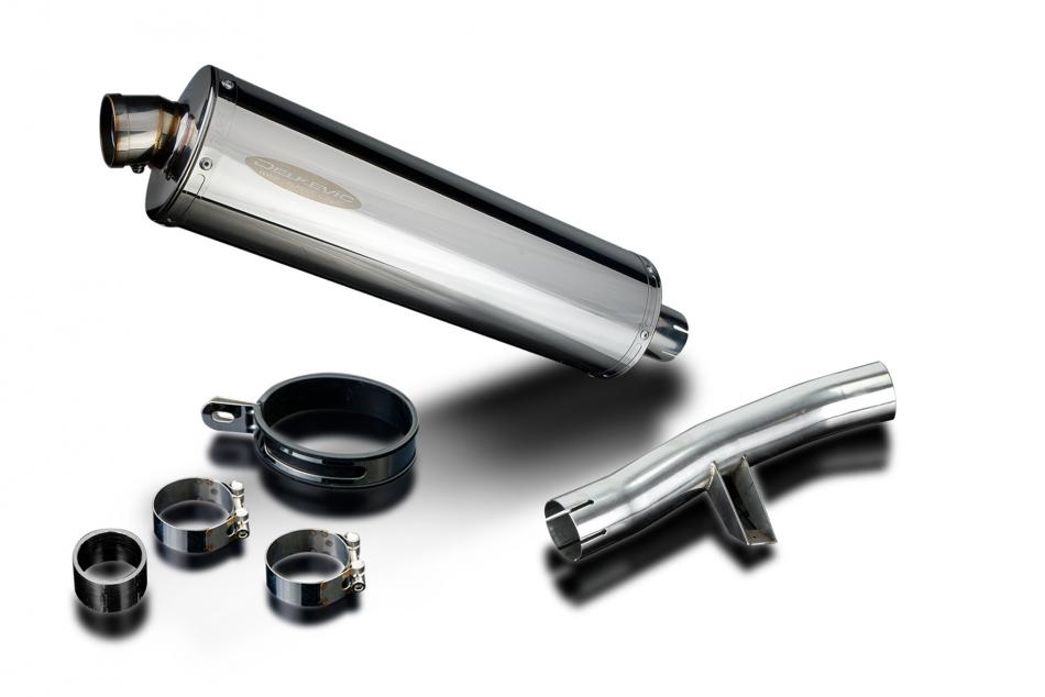 Replacement Silencer Kit for Honda CB1100 with Delkevic 450mm Oval Stainless Steel Silencer. Delkevic silencers are handcrafted from the highest quality materials to enhance your motorcycle in both performance and looks. We guarantee to improve your riding experience at an unbeatable price. The vast majority of our silencer kits come with all gaskets needed.