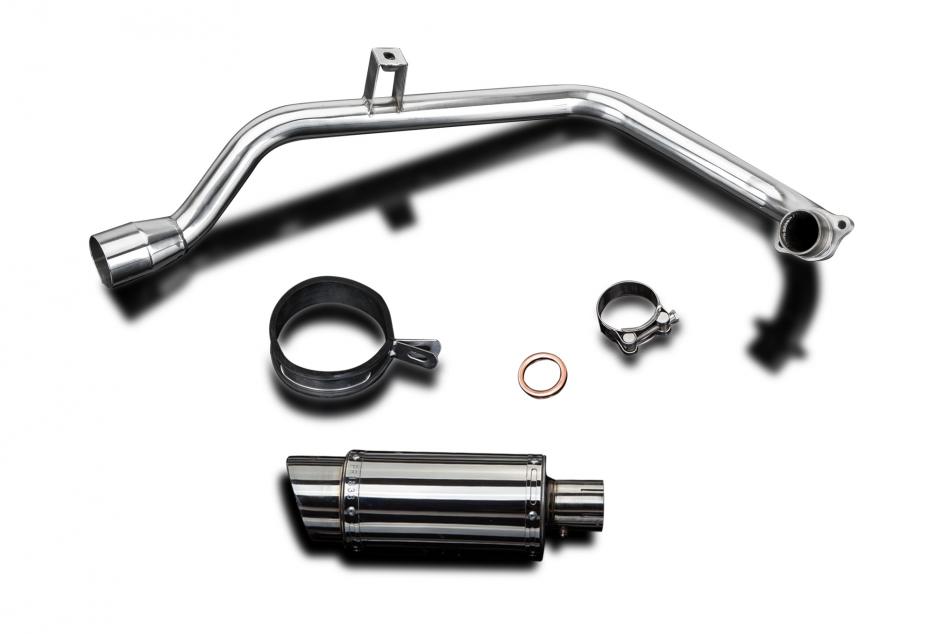 Complete exhaust system for Honda CB125F (2015-2020) with Delkevic Mini 200mm Round Stainless Steel Silencer. All Delkevic complete systems come with gaskets (where needed) clamps. We manufacture all our exhaust components in our own factory employing the most stringent quality control procedures.