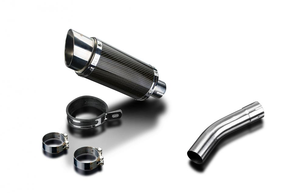 Replacement Silencer Kit for Honda CB400SF Hyper VTEC NC39 with Delkevic Mini 200mm Round Carbon Fibre Silencer. Delkevic silencers are handcrafted from the highest quality materials to enhance your motorcycle in both performance and looks. We guarantee to improve your riding experience at an unbeatable price. The vast majority of our silencer kits come with all gaskets needed.
