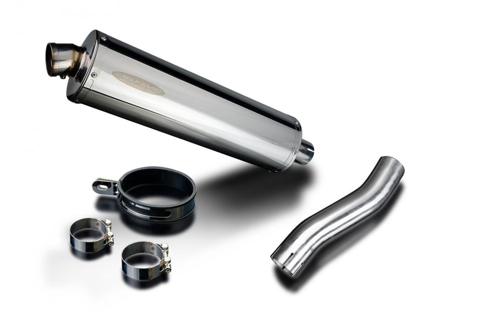 Replacement Silencer Kit for Honda CB500F (2016-2021) with Delkevic 450mm Oval Stainless Steel Silencer. Delkevic silencers are handcrafted from the highest quality materials to enhance your motorcycle in both performance and looks. We guarantee to improve your riding experience at an unbeatable price. The vast majority of our silencer kits come with all gaskets needed.