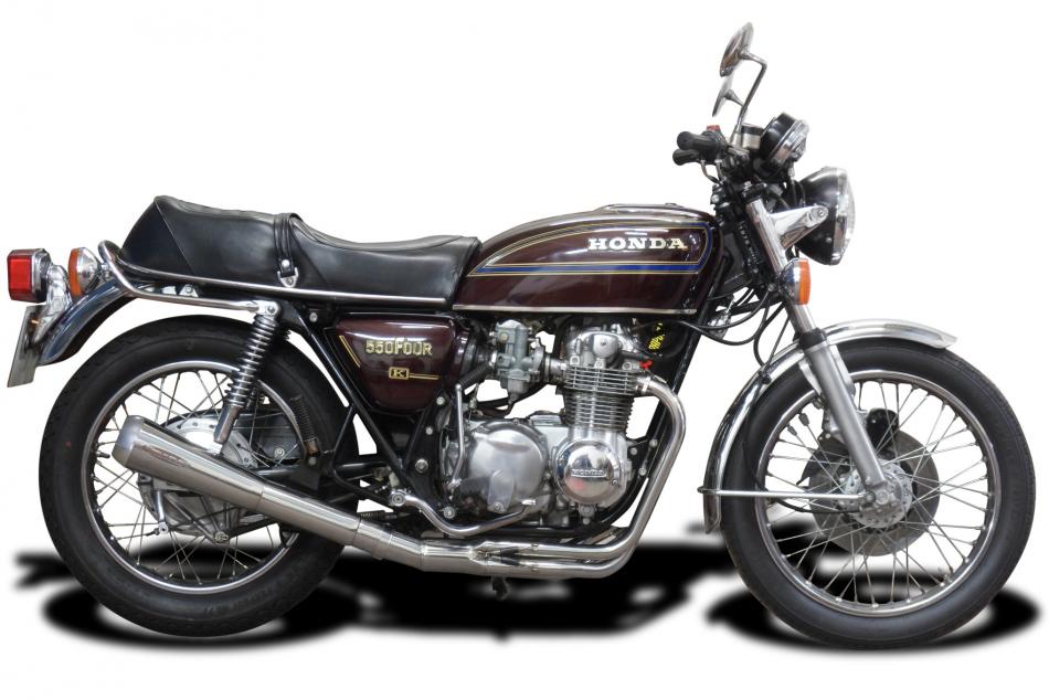 The CB500 FOUR followed the iconic CB750, to offer the sophistication of the 750 in a smaller, package, and an alternative to the 350cc twins. Delkevic products offer a choice, to either emulate the seventies craze for four into one pipes, or stay true to the legend and four silencer classic look.