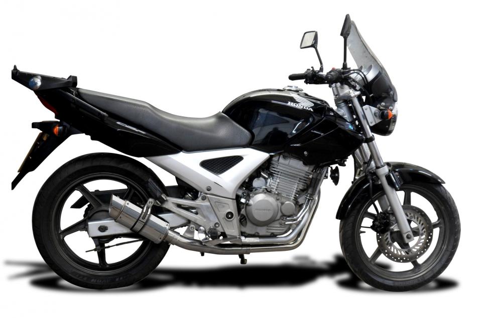 The Honda CBF250 is a reliable, lightweight 249cc air-cooled, four-stroke single-cylinder commuter, ideal for beginners and city riding. It features a 6-speed gearbox, and is known for its nimble handling, and low running costs. The addition of a Delkevic Exhaust will add pizzazz.