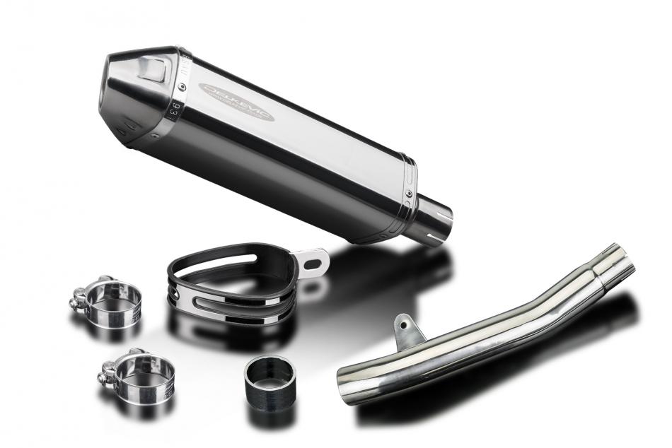 Replacement Silencer Kit for Honda CBF250 with Delkevic 320mm Tri-Oval Stainless Steel Silencer. Delkevic silencers are handcrafted from the highest quality materials to enhance your motorcycle in both performance and looks. We guarantee to improve your riding experience at an unbeatable price. The vast majority of our silencer kits come with all gaskets needed.