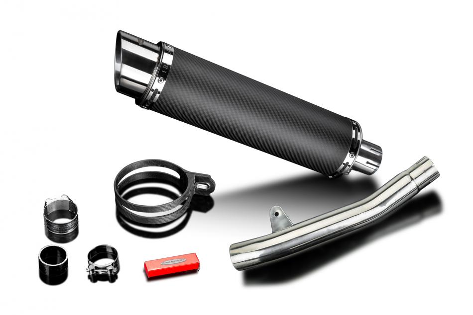 Replacement Silencer Kit for Honda CBF250 with Delkevic DL10 350mm Round Carbon Fibre Silencer. Delkevic silencers are handcrafted from the highest quality materials to enhance your motorcycle in both performance and looks. We guarantee to improve your riding experience at an unbeatable price. The vast majority of our silencer kits come with all gaskets needed.
