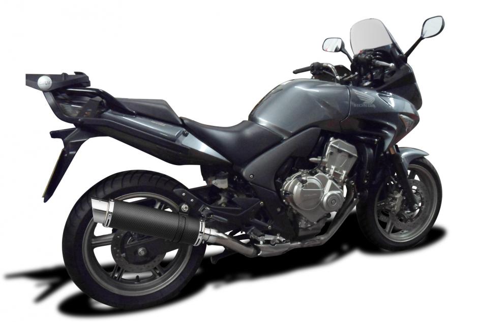 Replacement Silencer Kit for Honda CBF600N (ABS) (2008-2012) with Delkevic DL10 350mm Round Carbon Fibre Silencer. Delkevic silencers are handcrafted from the highest quality materials to enhance your motorcycle in both performance and looks. We guarantee to improve your riding experience at an unbeatable price. The vast majority of our silencer kits come with all gaskets needed.