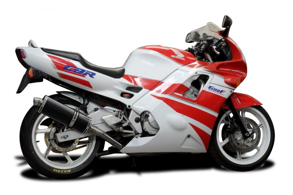 Replacement Silencer Kit for Honda CBR600 (1991-1998) with Delkevic 350mm Oval Carbon Fibre Silencer. Delkevic silencers are handcrafted from the highest quality materials to enhance your motorcycle in both performance and looks. We guarantee to improve your riding experience at an unbeatable price. The vast majority of our silencer kits come with all gaskets needed.