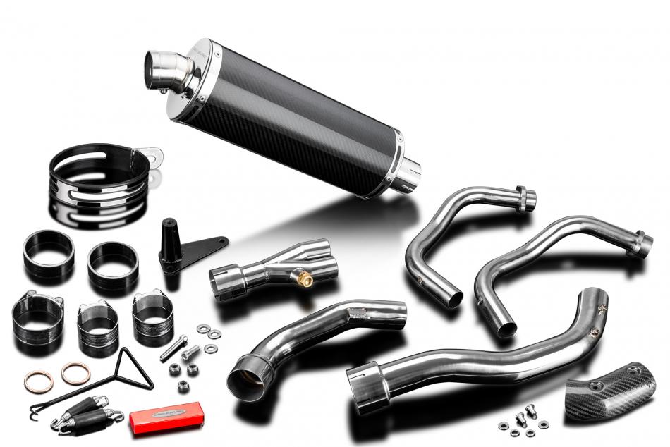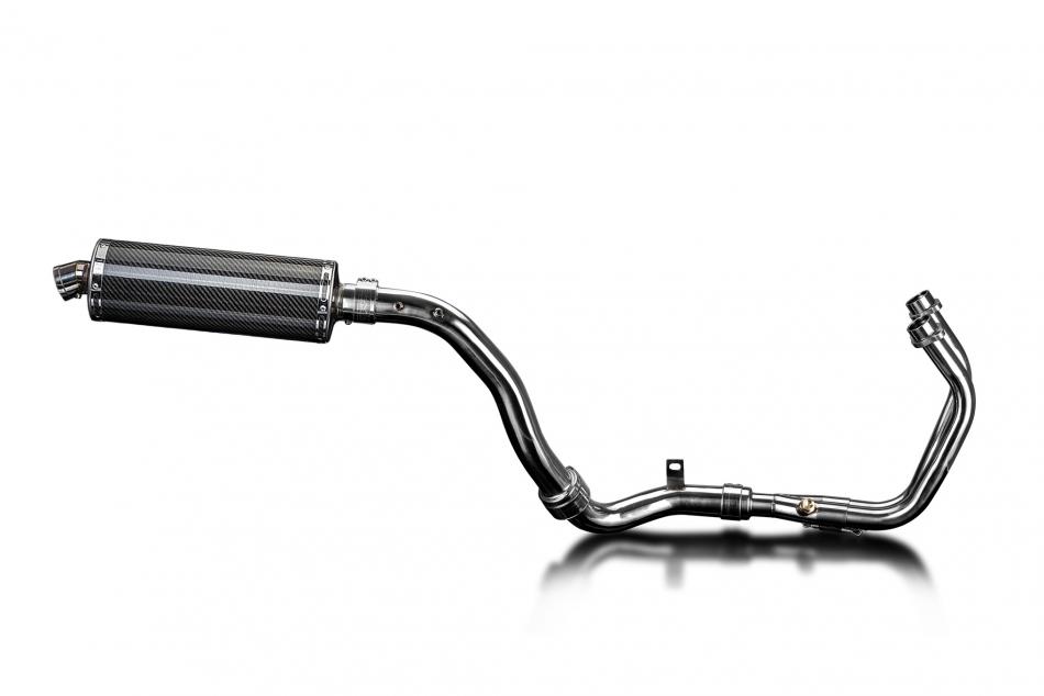 Complete exhaust system for Honda SCL500 CL500 (2023-2026) with Delkevic 350mm Oval Carbon Fibre Silencer. All Delkevic complete systems come with gaskets (where needed) clamps. We manufacture all our exhaust components in our own factory employing the most stringent quality control procedures.