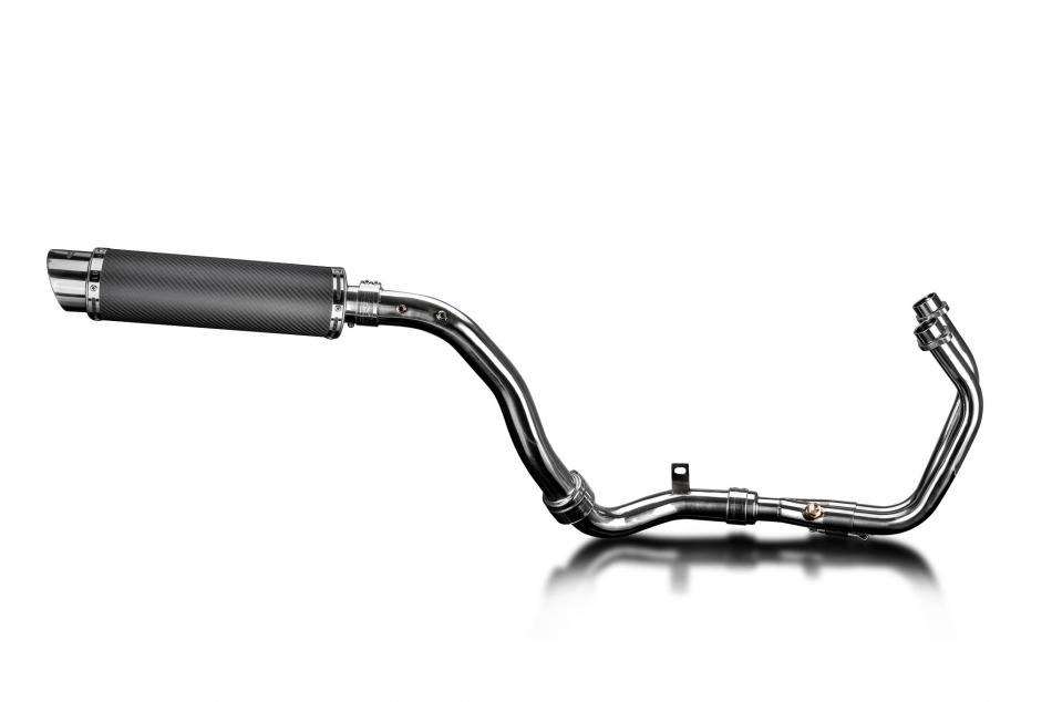 Complete exhaust system for Honda SCL500 CL500 (2023-2026) with Delkevic DL10 350mm Round Carbon Fibre Silencer. All Delkevic complete systems come with gaskets (where needed) clamps. We manufacture all our exhaust components in our own factory employing the most stringent quality control procedures.