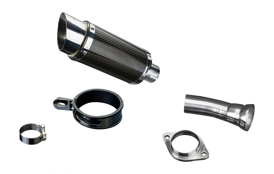 Replacement Silencer Kit for Honda VFR750 Interceptor (1990-1993) with Delkevic Mini 200mm Round Carbon Fibre Silencer. Delkevic silencers are handcrafted from the highest quality materials to enhance your motorcycle in both performance and looks. We guarantee to improve your riding experience at an unbeatable price. The vast majority of our silencer kits come with all gaskets needed.