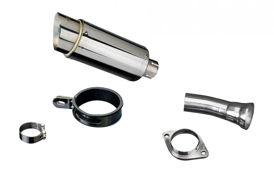 Replacement Silencer Kit for Honda VFR750 Interceptor (1990-1993) with Delkevic Mini 200mm Round Stainless Steel Silencer. Delkevic silencers are handcrafted from the highest quality materials to enhance your motorcycle in both performance and looks. We guarantee to improve your riding experience at an unbeatable price. The vast majority of our silencer kits come with all gaskets needed.