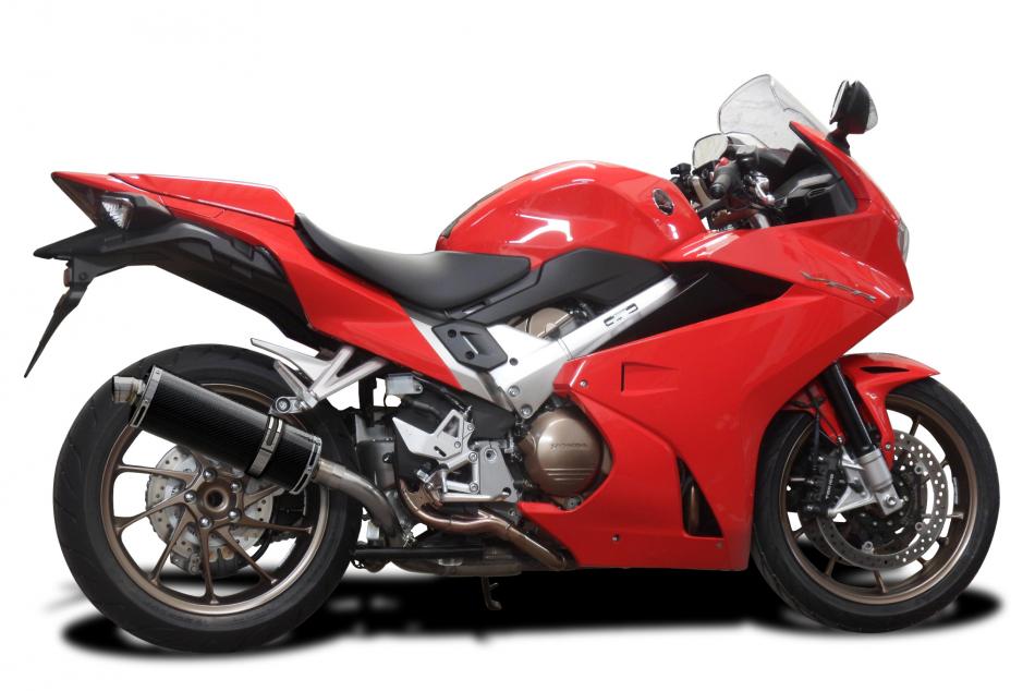Replacement Silencer Kit for Honda VFR800F Interceptor (2014-2015) with Delkevic 350mm Oval Carbon Fibre Silencer. Delkevic silencers are handcrafted from the highest quality materials to enhance your motorcycle in both performance and looks. We guarantee to improve your riding experience at an unbeatable price. The vast majority of our silencer kits come with all gaskets needed.