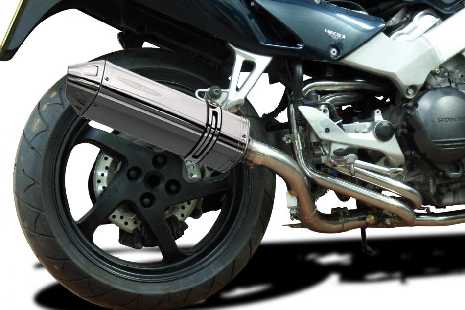 Replacement Silencer Kit for Honda VFR800 Interceptor (1998-2001) with Delkevic 320mm Tri-Oval Stainless Steel Silencer. Delkevic silencers are handcrafted from the highest quality materials to enhance your motorcycle in both performance and looks. We guarantee to improve your riding experience at an unbeatable price. The vast majority of our silencer kits come with all gaskets needed.
