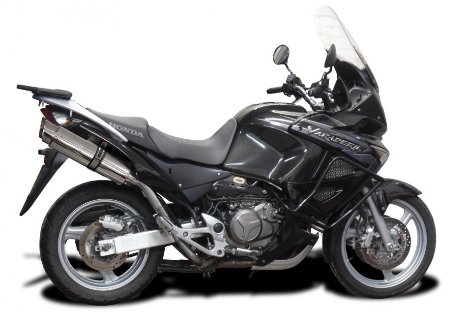 The Honda XL1000V Varadero is a heavy-weight adventure-touring motorcycle. Known for its immense comfort and long-distance capability. Enjoy those miles even more with a Delkevic exhaust.