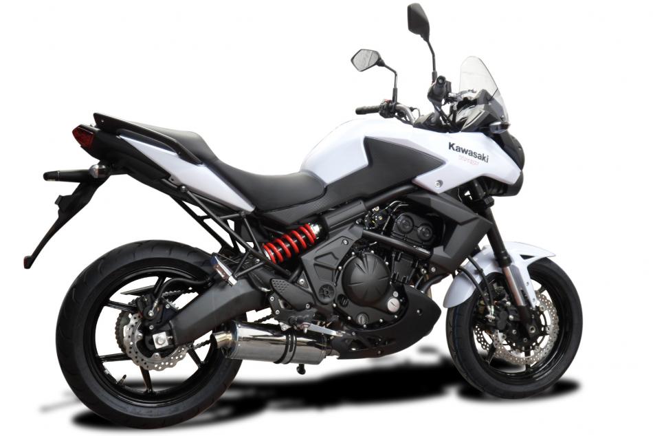 The Kawasaki KLE 650 Versys is a versatile, middleweight adventure-style road bike, featuring a 649cc parallel-twin engine, comfortable upright ergonomics, and agile handling suitable for commuting and touring, a Delkevic exhaust will make those miles fly by.