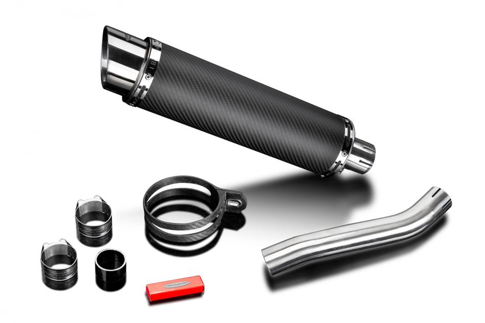 Replacement Silencer Kit for Kawasaki ZX-10R NINJA (2004-2005) with Delkevic DL10 350mm Round Carbon Fibre Silencer. Delkevic silencers are handcrafted from the highest quality materials to enhance your motorcycle in both performance and looks. We guarantee to improve your riding experience at an unbeatable price. The vast majority of our silencer kits come with all gaskets needed.