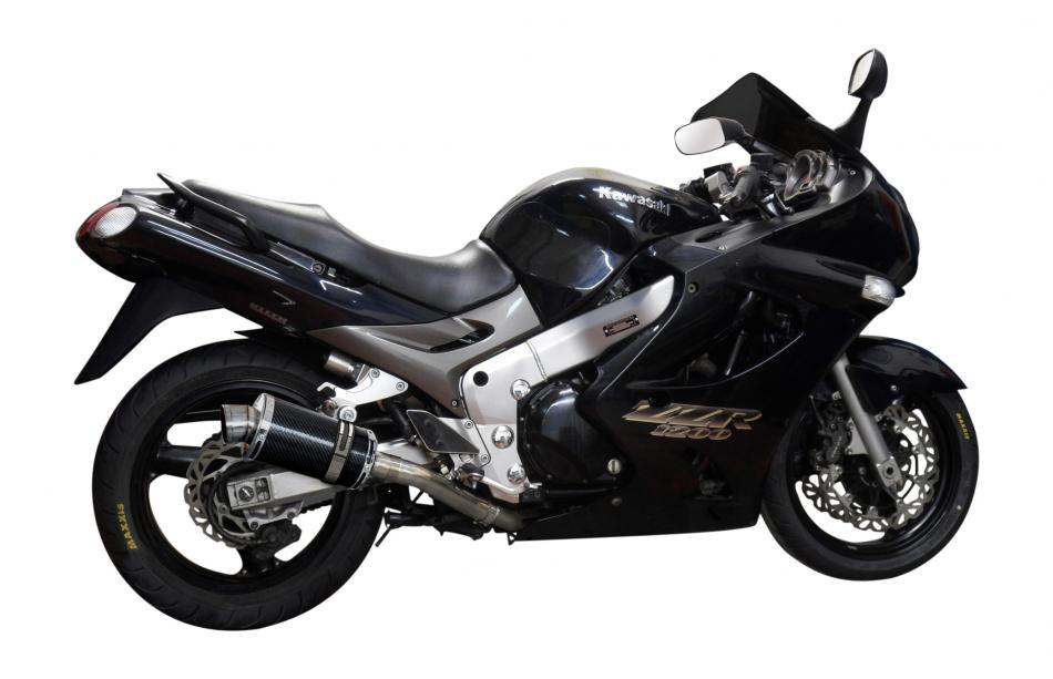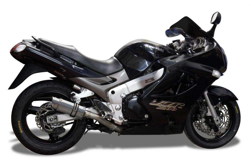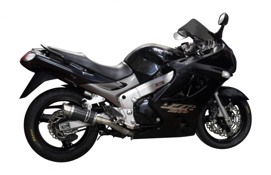 The Kawasaki ZZ-R1200 is a high-performance sport touring motorcycle. Balancing aggressive 160-horsepower performance with long-distance comfort. Improve its performance further with a Delkevic exhaust.