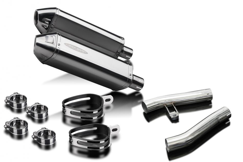 Replacement Silencer Kit for Kawasaki ZZR1200 (2002-2005) with Delkevic 320mm Tri-Oval Stainless Steel Silencer. Delkevic silencers are handcrafted from the highest quality materials to enhance your motorcycle in both performance and looks. We guarantee to improve your riding experience at an unbeatable price. The vast majority of our silencer kits come with all gaskets needed.