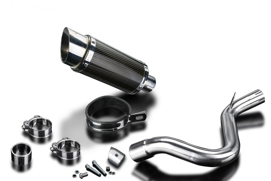 Replacement Silencer Kit for KTM 125 Duke (2011-2015) with Delkevic Mini 200mm Round Carbon Fibre Silencer. Delkevic silencers are handcrafted from the highest quality materials to enhance your motorcycle in both performance and looks. We guarantee to improve your riding experience at an unbeatable price. The vast majority of our silencer kits come with all gaskets needed.
