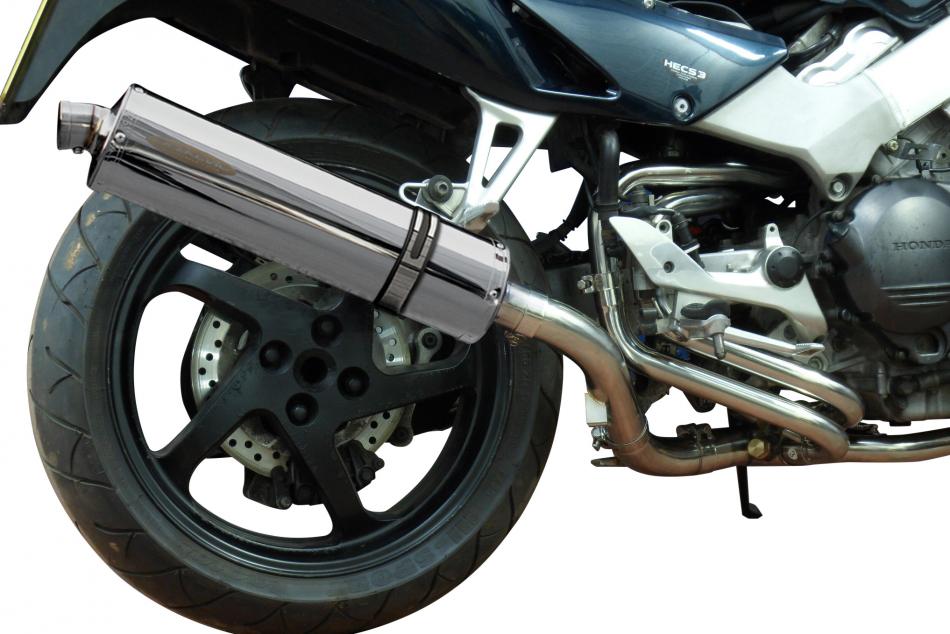 • HONDA VFR800Fi 98-01 FULL EXHAUST SYSTEM 450mm STAINLESS OVAL BSAU SILENCER