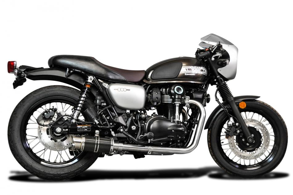 W650 W800 99-23 MINI 200mm CARBON FIBRE ROUND SILENCERS 2-2 COMPLETE SYSTEM