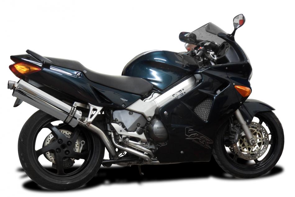 HONDA VFR800Fi 98-01 FULL EXHAUST SYSTEM 450mm STAINLESS OVAL BSAU SILENCER