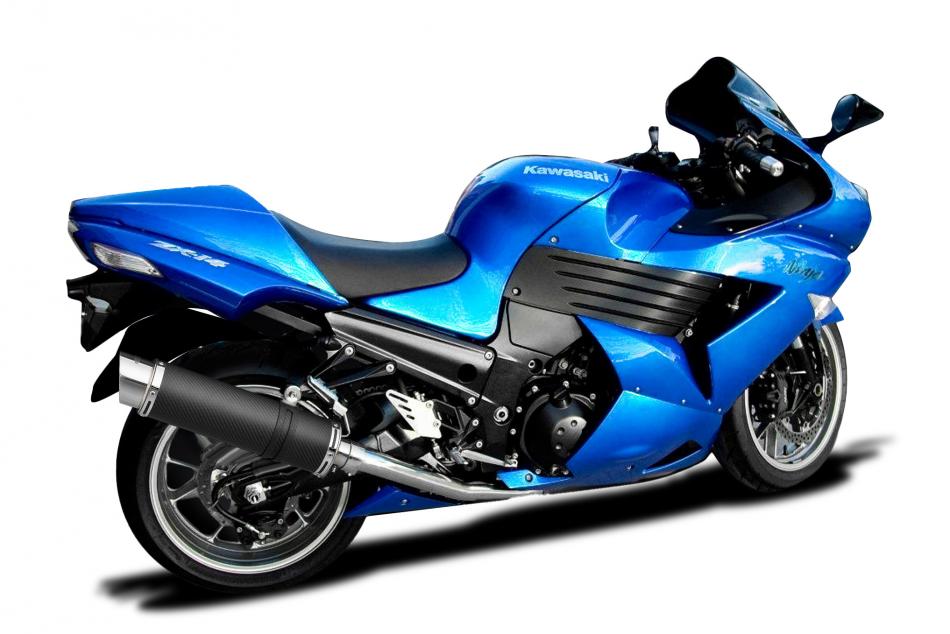 KAWASAKI ZZR1400 NINJA 2008-2011 350mm ROUND CARBON BSAU SILENCER EXHAUST KIT