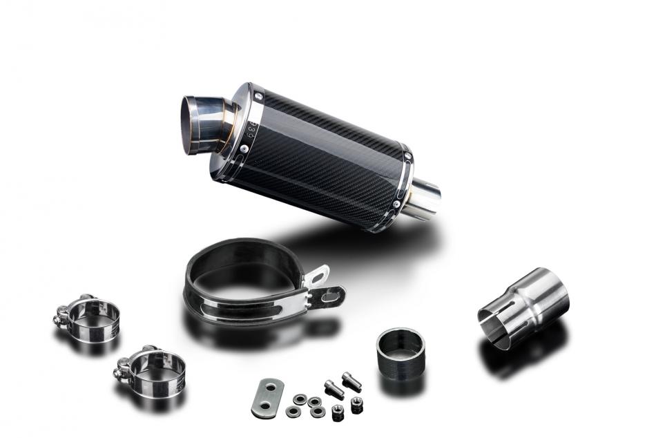 Replacement Silencer Kit for Royal Enfield Himalayan 410 (2017-2024) with Delkevic DS70 225mm Oval Carbon Fibre Silencer. Delkevic silencers are handcrafted from the highest quality materials to enhance your motorcycle in both performance and looks. We guarantee to improve your riding experience at an unbeatable price. The vast majority of our silencer kits come with all gaskets needed.
