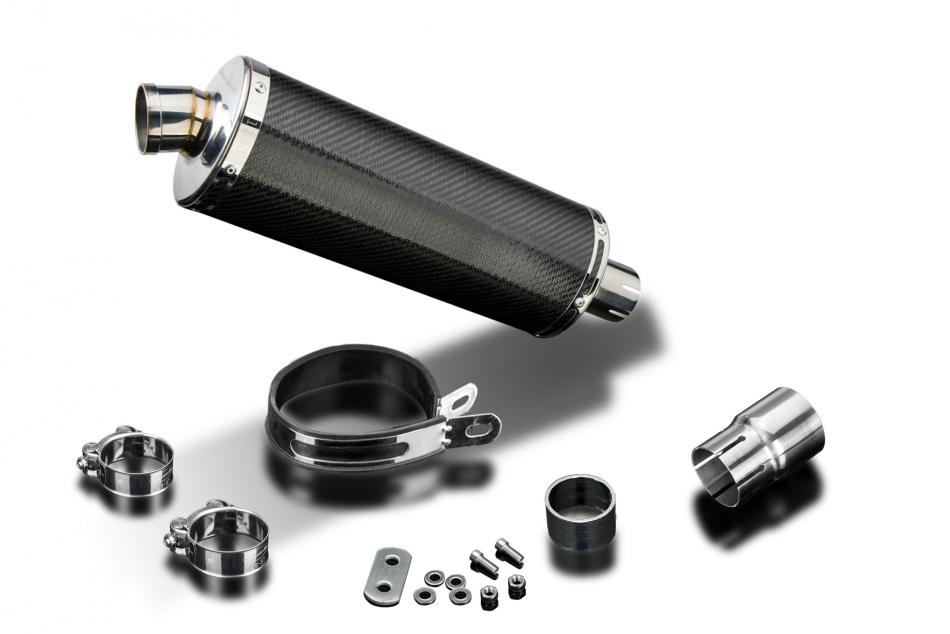 Replacement Silencer Kit for Royal Enfield Himalayan 410 (2017-2024) with Delkevic 350mm Oval Carbon Fibre Silencer. Delkevic silencers are handcrafted from the highest quality materials to enhance your motorcycle in both performance and looks. We guarantee to improve your riding experience at an unbeatable price. The vast majority of our silencer kits come with all gaskets needed.
