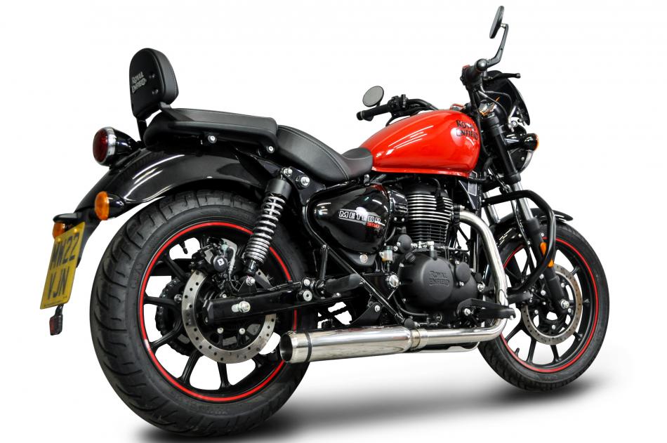 Royal Enfield Meteor 2021-24 Complete Exhaust 410mm Bull Nose Silencer Stainless