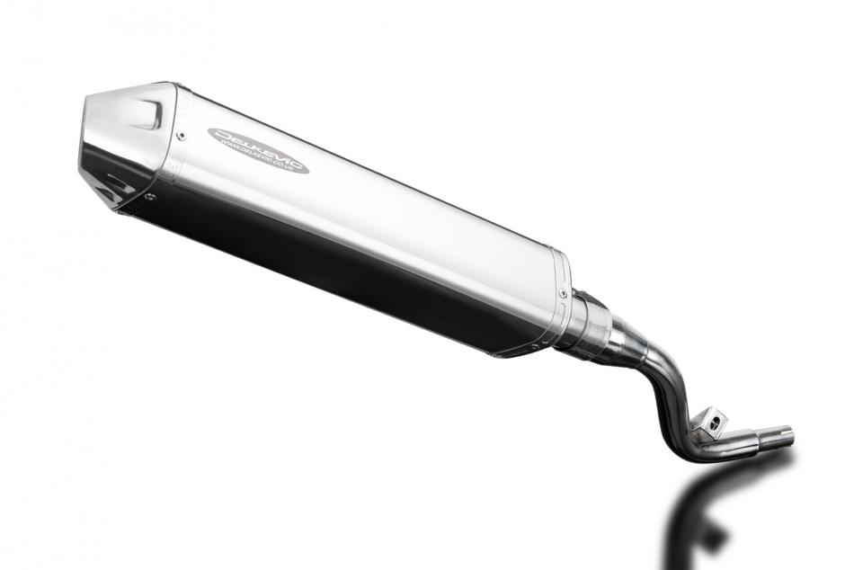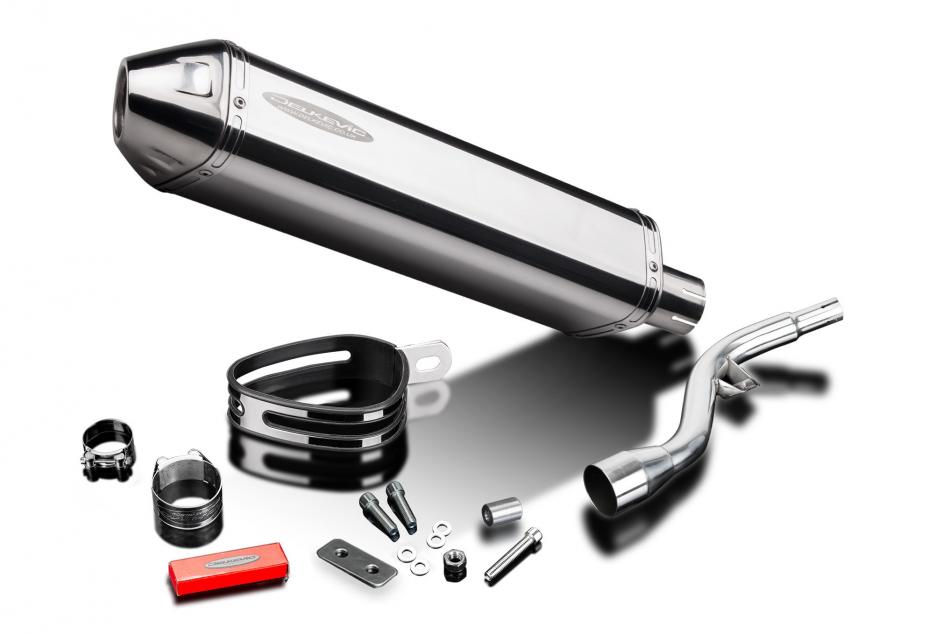 Replacement Silencer Kit for Suzuki DR125SM with Delkevic 420mm Tri-Oval Stainless Steel Silencer. Delkevic silencers are handcrafted from the highest quality materials to enhance your motorcycle in both performance and looks. We guarantee to improve your riding experience at an unbeatable price. The vast majority of our silencer kits come with all gaskets needed.