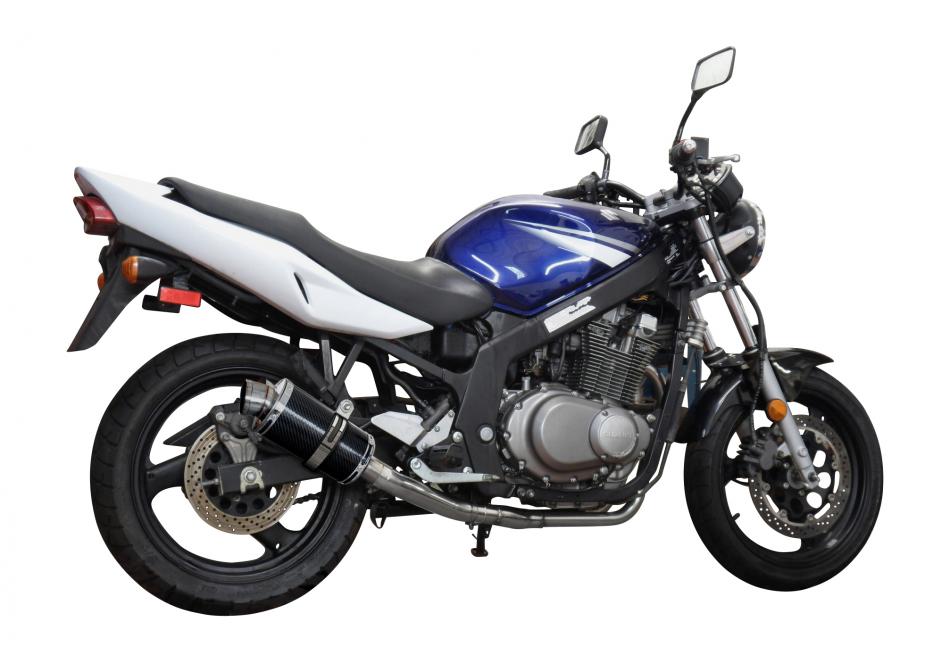 SUZUKI GS500 E/F 1989-2009 FULL 2-1 EXHAUST SYSTEM 200mm CARBON ROUND SILENCER