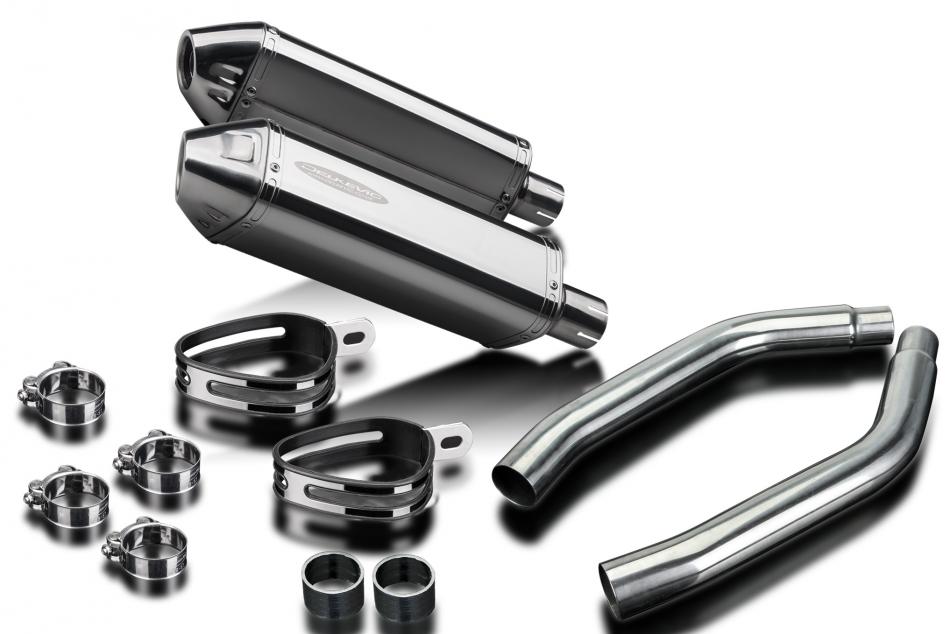 Replacement Silencer Kit for Suzuki GSX-R1100W with Delkevic 320mm Tri-Oval Stainless Steel Silencer. Delkevic silencers are handcrafted from the highest quality materials to enhance your motorcycle in both performance and looks. We guarantee to improve your riding experience at an unbeatable price. The vast majority of our silencer kits come with all gaskets needed.