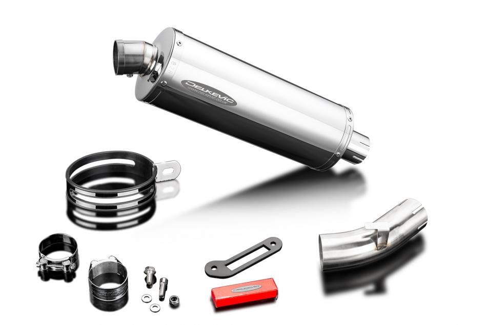 Replacement Silencer Kit for Suzuki GSX-S1000GX (2024-2026) with Delkevic 350mm Oval Stainless Steel Silencer. Delkevic silencers are handcrafted from the highest quality materials to enhance your motorcycle in both performance and looks. We guarantee to improve your riding experience at an unbeatable price. The vast majority of our silencer kits come with all gaskets needed.