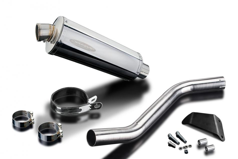 Replacement Silencer Kit for Suzuki GSX-R750 with Delkevic 350mm Oval Stainless Steel Silencer. Delkevic silencers are handcrafted from the highest quality materials to enhance your motorcycle in both performance and looks. We guarantee to improve your riding experience at an unbeatable price. The vast majority of our silencer kits come with all gaskets needed.