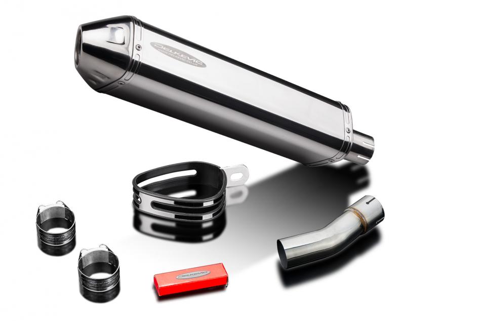 Replacement Silencer Kit for Suzuki SV650 (1998-2002) with Delkevic 420mm Tri-Oval Stainless Steel Silencer. Delkevic silencers are handcrafted from the highest quality materials to enhance your motorcycle in both performance and looks. We guarantee to improve your riding experience at an unbeatable price. The vast majority of our silencer kits come with all gaskets needed.