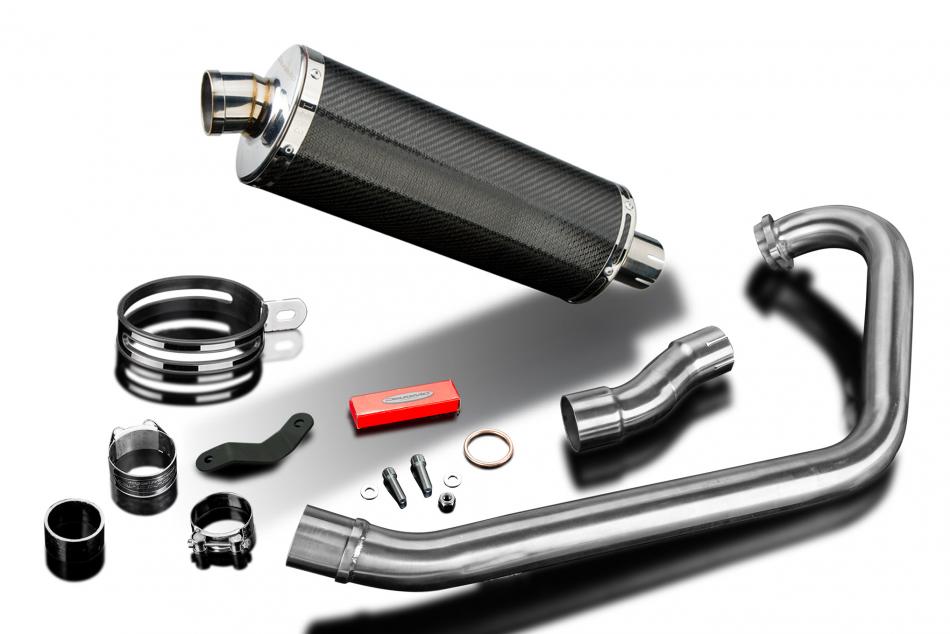Complete exhaust system for Triumph Scrambler 400X (2023-2026) with Delkevic 350mm Oval Carbon Fibre Silencer. All Delkevic complete systems come with gaskets (where needed) clamps. We manufacture all our exhaust components in our own factory employing the most stringent quality control procedures.